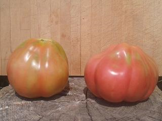 Tomates carnosos de color rosa cuando están maduros y con mucho jugo.