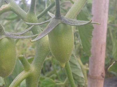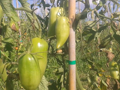 Los tomates son alargados y con una forma que recuerda a la de algunas variedades de pimiento.